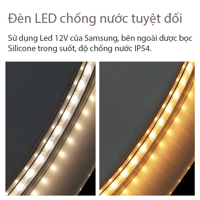 - Gương đèn led phòng tắm SMHome GNT12 được làm bằng phôi gương nhập khẩu cao cấp AGC dày 5mm có khả năng chống ố mốc, hoen gỉ, chịu được nhiệt độ cao, khả năng chịu va đập tốt...Cho hình ảnh phản chiếu trung thực nhất, không làm đen da khi soi. Bảo hành gương lên đến 5 năm.