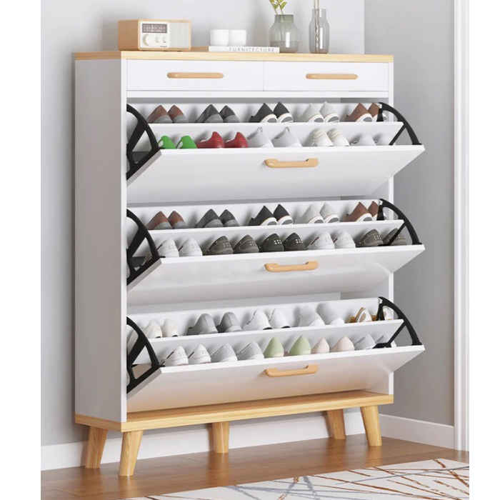 Tủ đựng giày dép SMHome GD12 được thiết kế thêm phần ngăn kéo khác với mã GD11.
