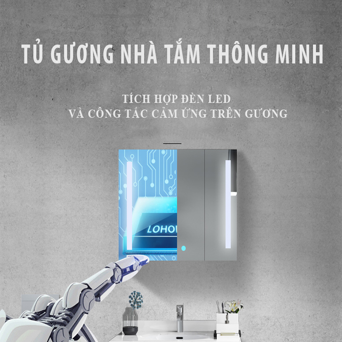 - Tủ gương phòng tắm có tích hợp đèn led Samsung 15W và công tắc cảm ứng trên gương.