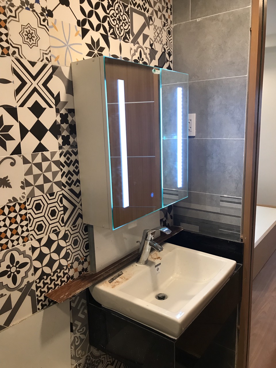 - Tủ gương phòng tắm có tích hợp đèn led Samsung 15W và công tắc cảm ứng trên gương.