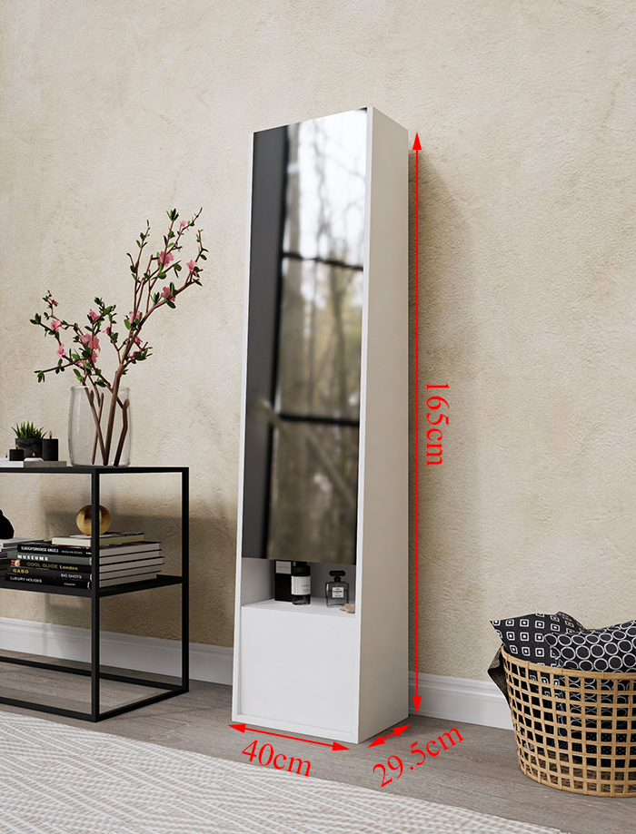 Nếu bạn là du học sinh Hàn Quốc hay đã từng ở Hàn Quốc thì sản phẩm tủ gương soi toàn thân không còn xa lạ với bạn. Tủ được thiết kế gọn gàng và tiện lơi, vừa để được đồ, vừa làm gương soi toàn thân. Tủ gương soi toàn thân giúp tiết kiệm không gian cho căn phòng. Mở gương ra là một hệ tủ phía sau rộng rãi tha hồ để đồ trang điểm, mỹ phẩm, trang sức,...